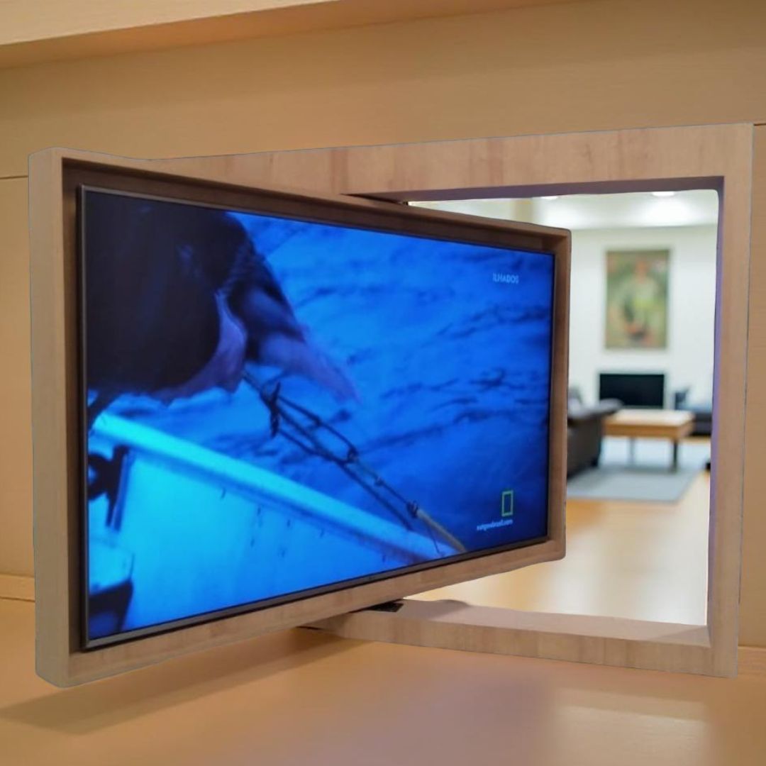 O kit foi pensado para ser integrado a painéis fabricados por marceneiros, permitindo que o painel gire completamente, atendendo ambientes integrados ou layouts versáteis.