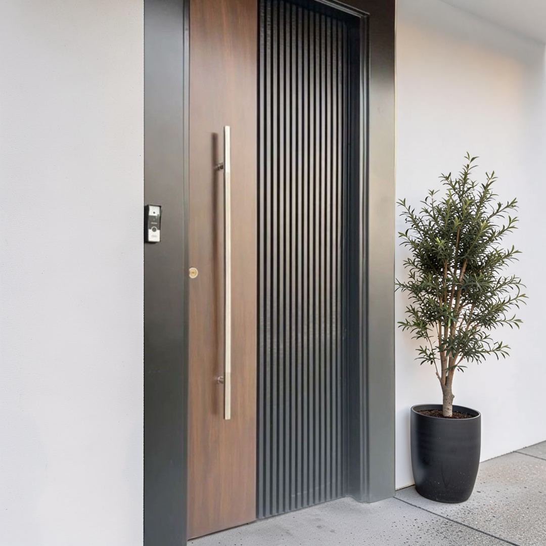 Com 1,30 metro de comprimento total, ele valoriza portas grandes e projetos sofisticados, sendo perfeito para entradas de residências, condomínios, lojas e empresas.